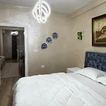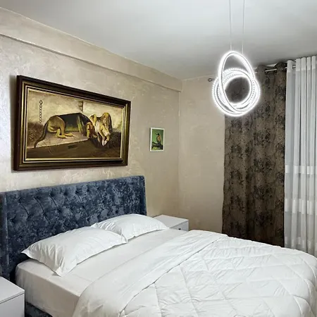 Luxury Apartment 1 Near Square 21俯瞰着花园,仅需25分钟即可到达地拉那的阿爾巴尼亞總理府。 公寓有炉子 和厨具,都是在厨房里的。